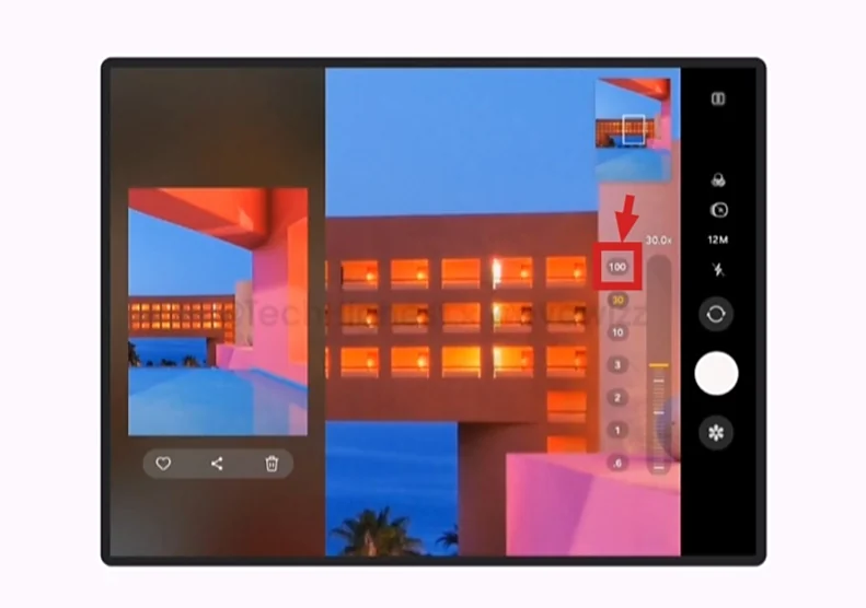尤其值得注意的是,相机应用的动画中出现了 100 倍变焦选项。对于三星折叠屏手机而言,这是一项前所未有的功能。